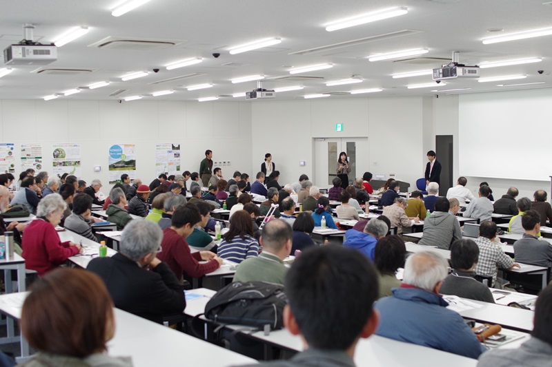 2018年1月20日、東京の帝京科学大学7号館にて「モニタリングサイト1000里地調査10年の成果~データでひも解く里山の変化と市民調査の可能性~」と題し、全国の調査員や新規一般サイトの調査員、一般の市民にもご参加いただきシンポジウムを開催しました。当日は雲が多く寒い日でしたが、北は北海道から南は熊本まで全国から約130名もの方にご参加いただきました。
