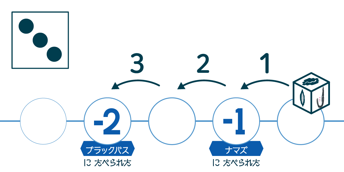 みなさんが出すサイコロの目で変わるので、ドキドキしてください。