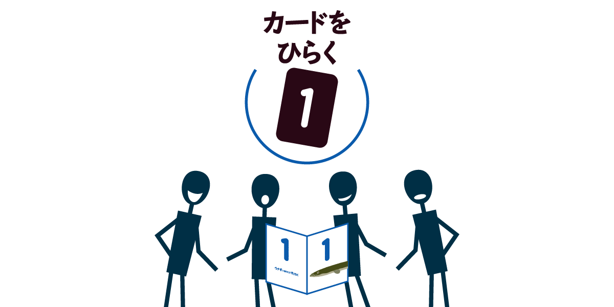 「カードをひらく」のマスでは、その数字のカードをひらいて、みんなで読みましょう。